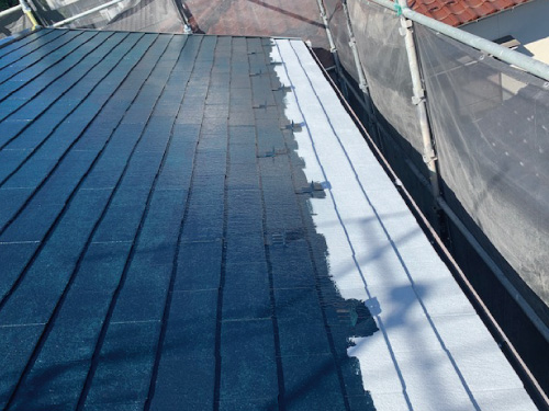 カラーベスト素材。オシャレで素材として軽いので建物に負担をかけにくいと人気の屋根材です。